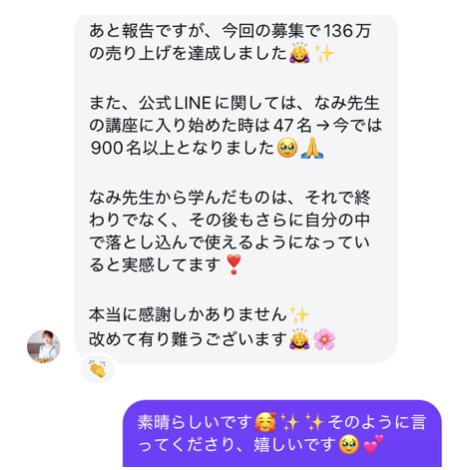 47名→900名、月136万円達成と多数の方から求められる超人気講師へ✨