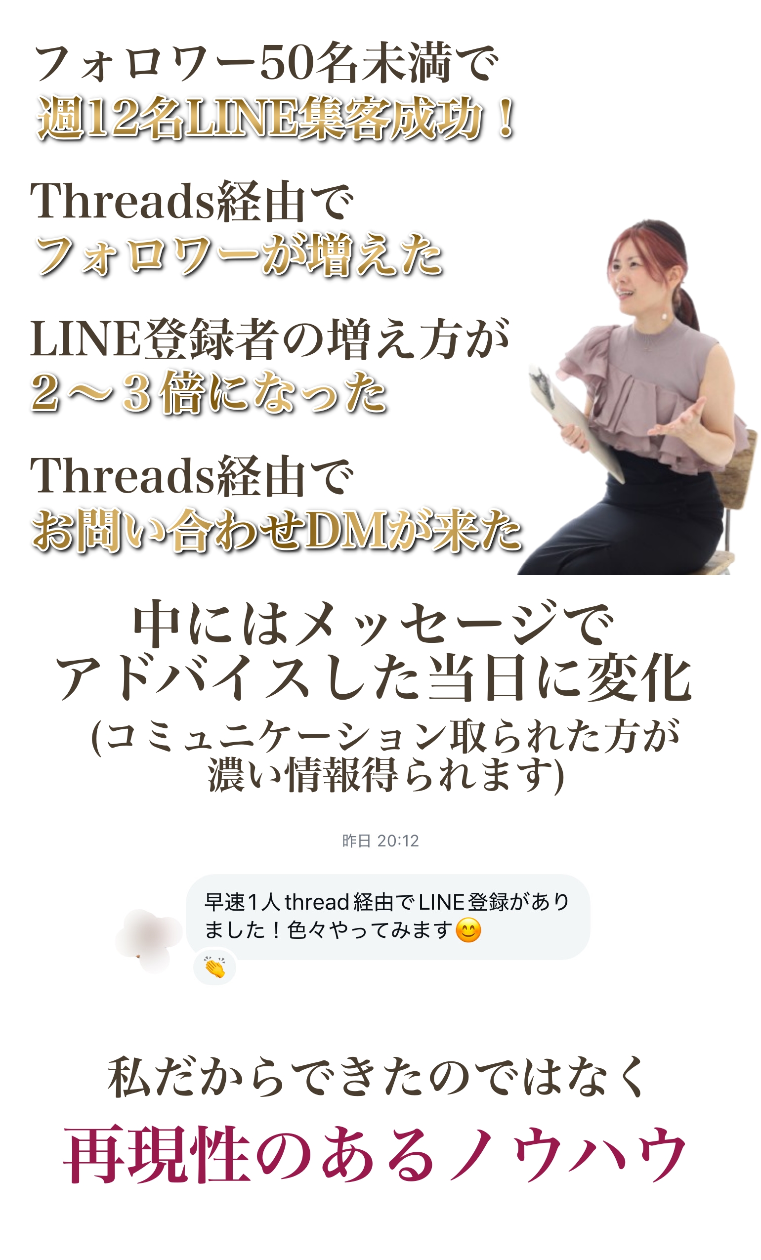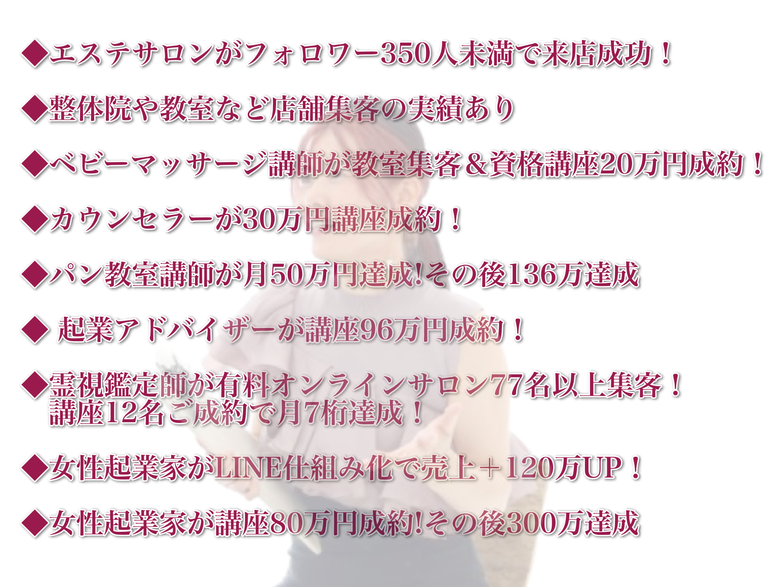 お問い合わせも増えてきて即決をしてくださる方、悩んでも最終的に自分を変えたいと受けてくださる方が増えたっていう感じです。