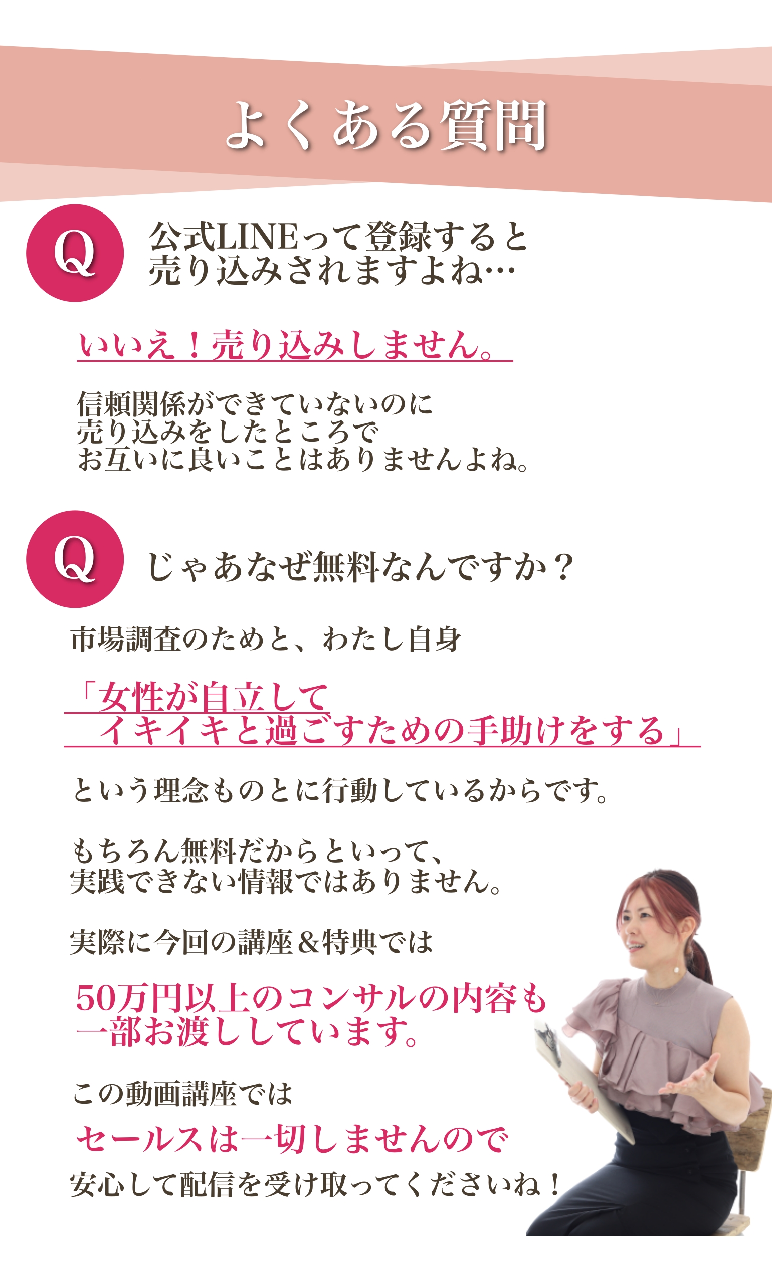 発信して結局お金を頂くから何が有料のもので、何が無料のものかの境目が分からなかったので、あとペルソナ決めとか、